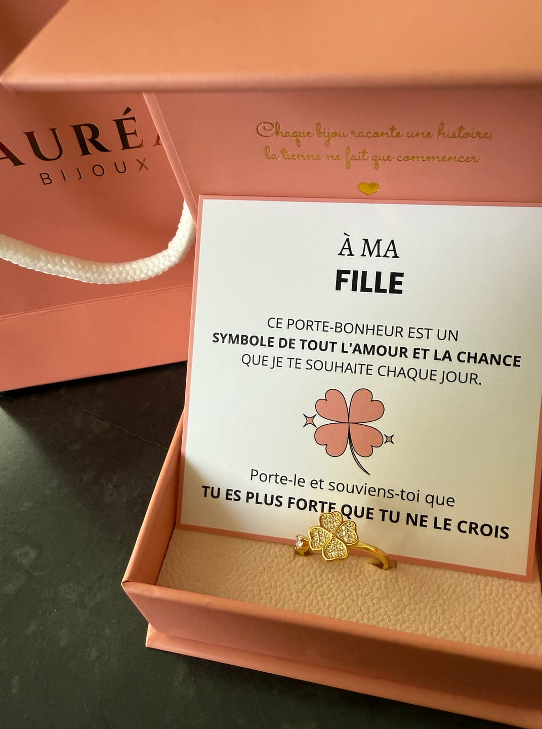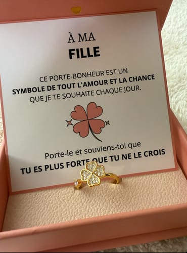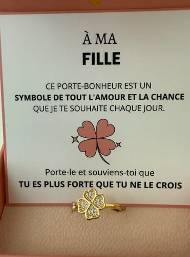 Cette bague représente tellement pour ma fille, je lui souhaite toute la chance pour sa vie. merci pour cette superbe création, la bague est juste MAGNIFIQUE !
