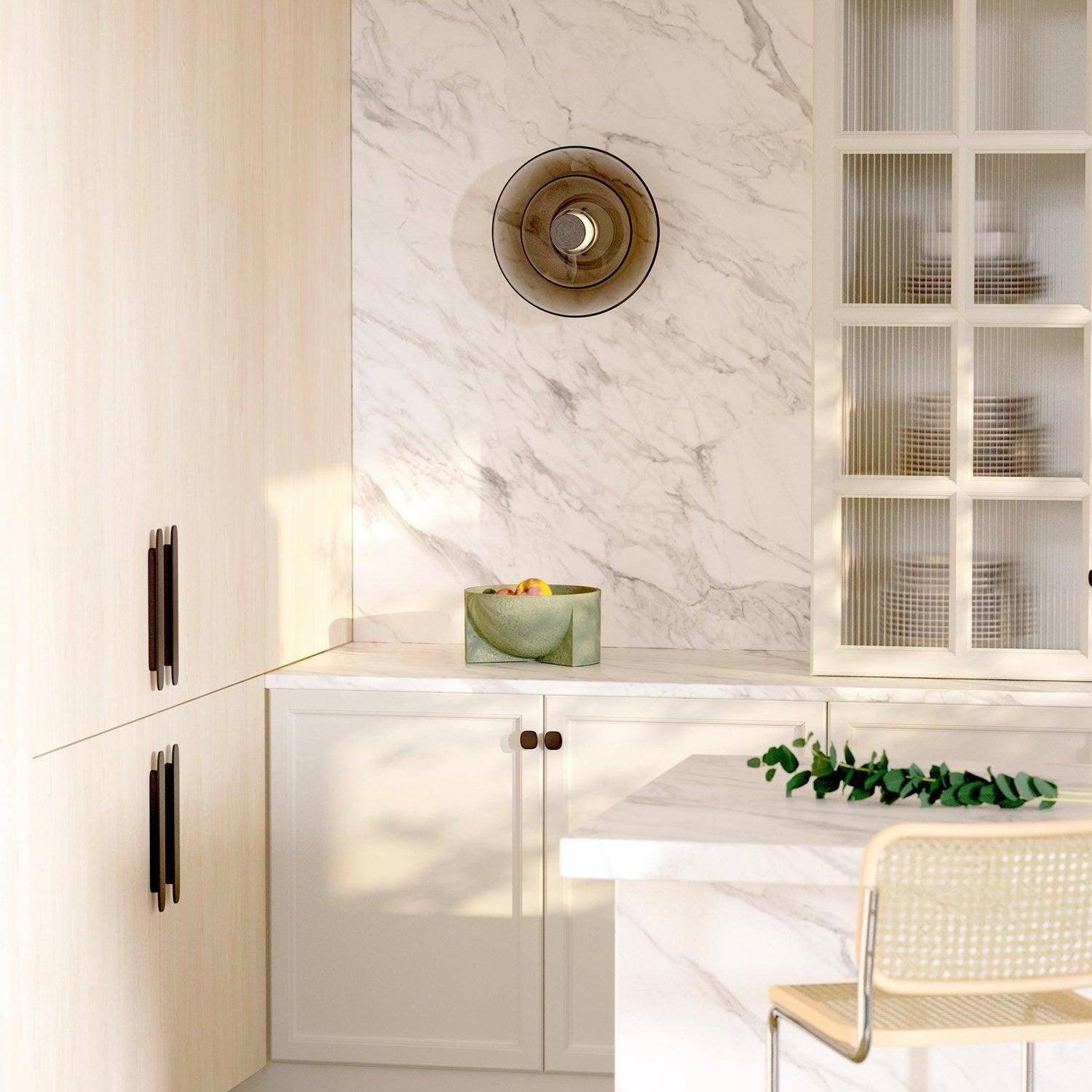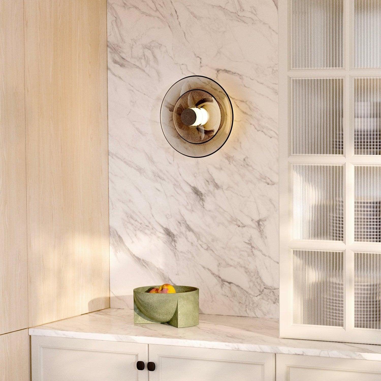 Grâce à sa forme discrète, cette lampe en verre teinté s'intègre harmonieusement à tout type de décoration. Mais ne vous fiez pas à sa simplicité, cette lampe murale est tout sauf ordinaire.