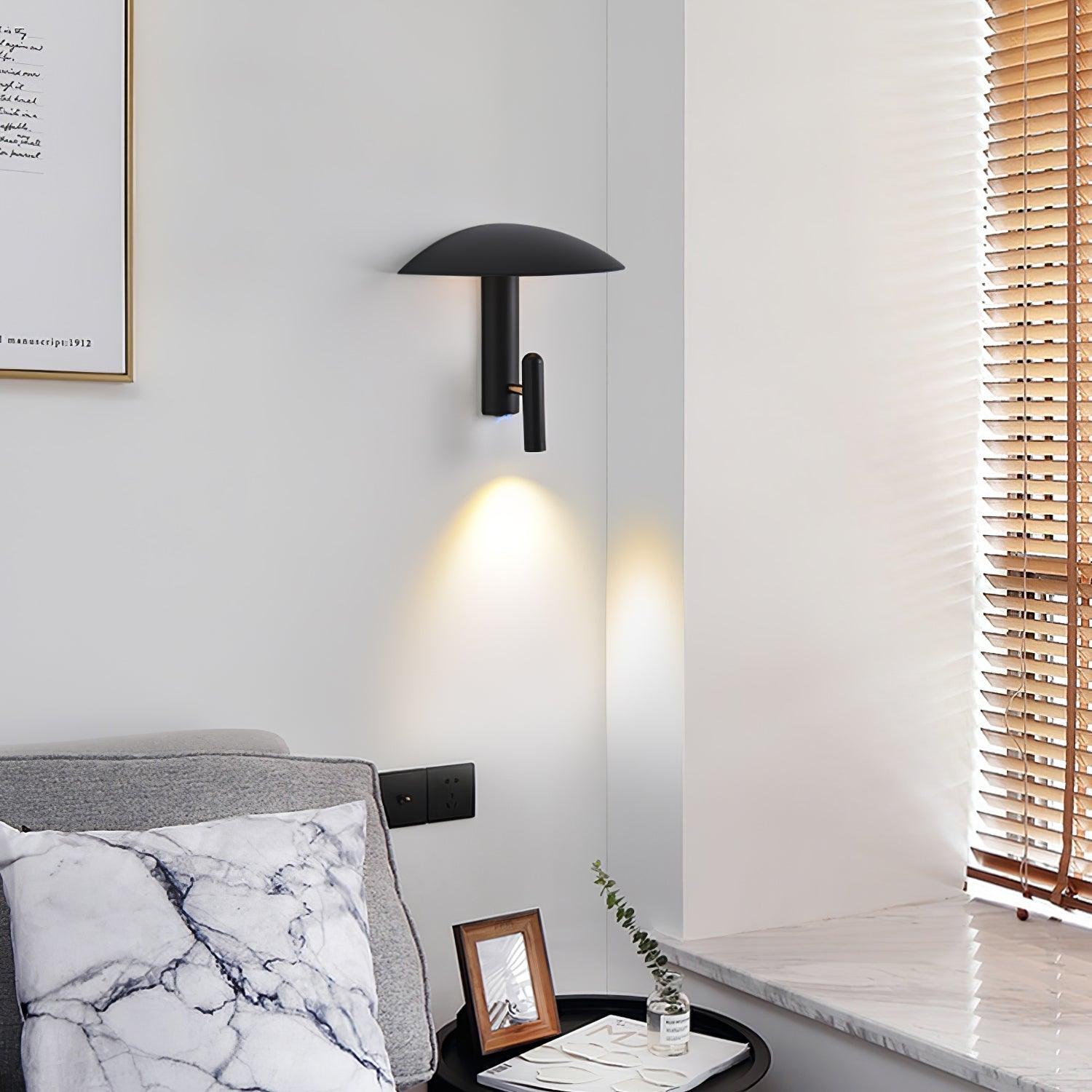 Le design unique de cette lampe murale pour chambre d'adulte capte la lumière et la diffuse harmonieusement dans l'espace, sans éblouir, idéal pour un éclairage subtil.
