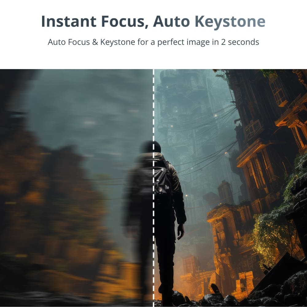 Transforme n'importe quel mur ou plafond en une évasion cinématographique de 135 pouces - avec un son puissant, la magie de l'autofocus et la simplicité du plug-and-play.